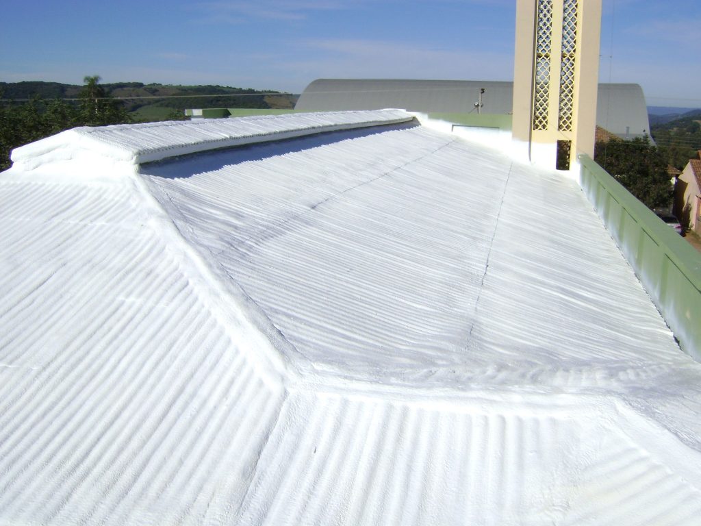 Aplicação de Isolamento a base de Sistema spray de espuma de poliuretano sobre telha de zinco.
